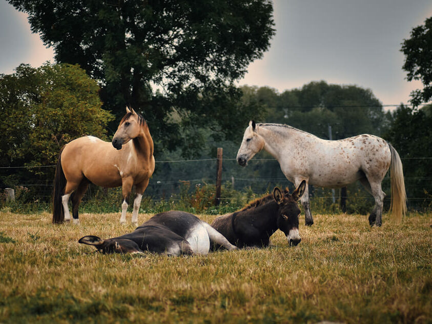 - sur le lieu de vie des chevaux, ânes et animaux de ferme.